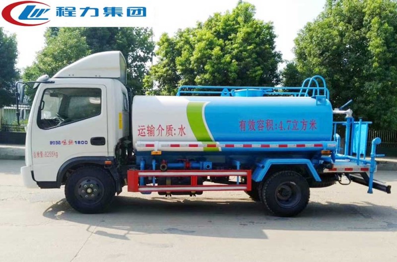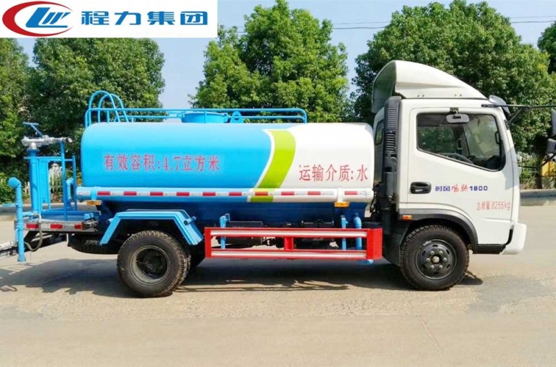 該車型為東風公司最新國五 排放標準。灑水車專用部分由罐體、 水泵、取力器、傳動軸、球閥、噴灑裝置等部件組成。采用國家定型產品,具有性能 穩定、工作可靠、通用適配等特點。灑水車罐體結構為橢圓形或方圓形,采用武鋼優 質碳鋼制作,先進的對焊接工藝,罐體內設防蕩防波隔板,下端有通孔,罐體成型后高 壓氣體試漏檢測,使罐體具有強度高、重心穩、車輛運載安全平穩等特點。