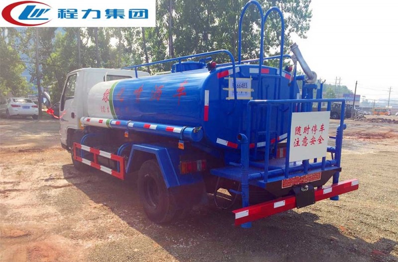 罐體有效容積4.5立方,罐體采用國(guó)標(biāo)Q235碳鋼,罐體厚度3mm,自吸自排水泵,帶前沖裝置,后灑裝置,左右側(cè)噴裝置,尾部帶有安全操作平臺(tái),帶消防接口,自流口,兩根輸水管,尾部綠化高炮,綠化高炮可調(diào)節(jié)直沖,大雨,中雨,毛毛雨霧,可以連續(xù)調(diào)節(jié),360度旋轉(zhuǎn);