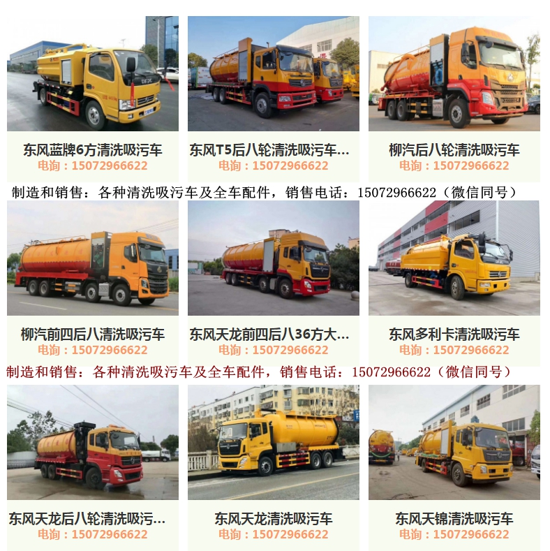 清洗吸污車導購:東風多利卡清洗吸污車(10方),東風天錦清洗吸污車(15方),江淮清洗吸污車,東風天龍雙橋清洗吸污車,東風天龍前四后八清洗吸污車。