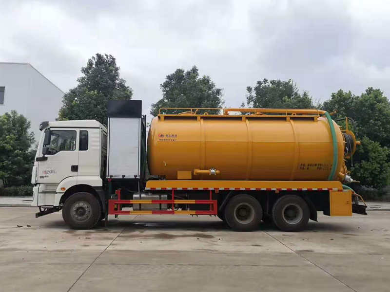 罐體容積約22立方左右,清水罐9立方,其余為污水,罐體8mm厚,封頭8mm厚,舉升頂為自卸中置頂,副駕駛一側(cè)清水罐和污水罐用DN100球閥互通,另罐頂裝一個(gè)互通;副駕駛一側(cè)按照公告圖片安裝爬梯;清水罐:罐頂水泥罐口一個(gè),帶爬梯,帶品浮330高壓泵,尾部液壓卷盤,左右各裝一個(gè)消防栓進(jìn)水口,清水罐裝兩側(cè)各一個(gè)小球閥,罐底裝一個(gè)DN65排水閥。吸污罐:采用濰柴420馬力副發(fā)動(dòng)機(jī),帶42水循環(huán)泵,一個(gè)水泥罐口,罐內(nèi)爬梯,污水罐底部201不銹鋼內(nèi)襯,罐體內(nèi)部防浪板加固,水箱裝在左側(cè);副駕偷排150鋁合金球閥用氣動(dòng)閥帶,吸污罐尾部大蓋不開啟,液壓開600小蓋排污;左側(cè)一個(gè)150球閥排污口,右側(cè)兩個(gè)100鋁合金球閥;側(cè)抽一個(gè)100鋁合金球閥;罐體尾部兩側(cè)工具箱(左邊工具箱兩層,右側(cè)加大),安裝冬季氣吹水,箭頭燈,贈(zèng)送配件:80米25號(hào)高壓管,1根8米吸污管,一個(gè)9公斤噴頭。油漆:工程黃