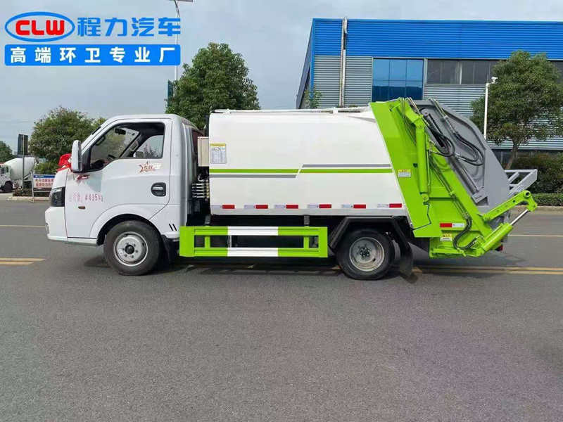 裝上?配置:采用Q345錳材鋼?質,弧形箱體,向雙?壓結縮?構,森威?博樂路多?閥,森威?博油樂?缸,英國DLI封密?圈,安徽皖液?油泵,線無?遙控,光感電?應,駕帶?駛室操作,壓縮比1:0.7,可掛120L、240L標垃配?圾桶。