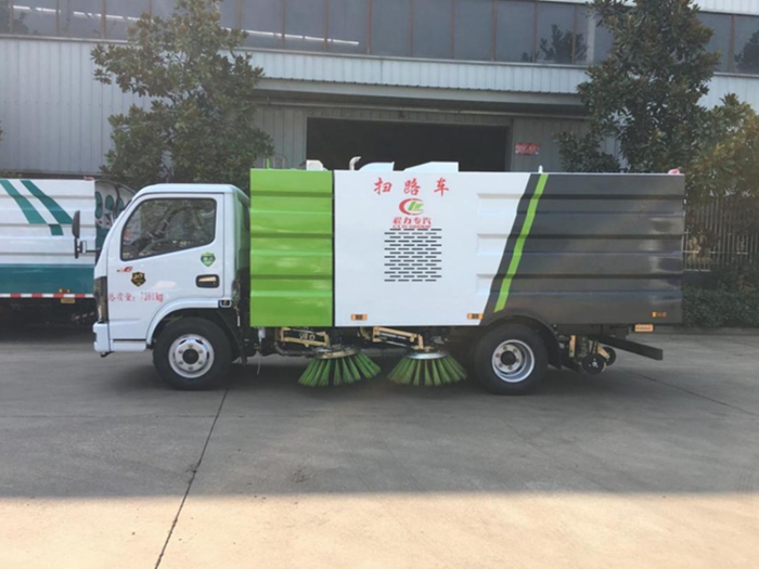 ???? 該掃路車采用東風(fēng)多利卡型國六二類底盤改裝,加裝副發(fā)動機、風(fēng)機、清水箱、垃圾箱、左右立掃、后置吸盤,掃盤降塵系統(tǒng),液壓系統(tǒng)、專用裝置電控系統(tǒng)和副車架等改裝而成。