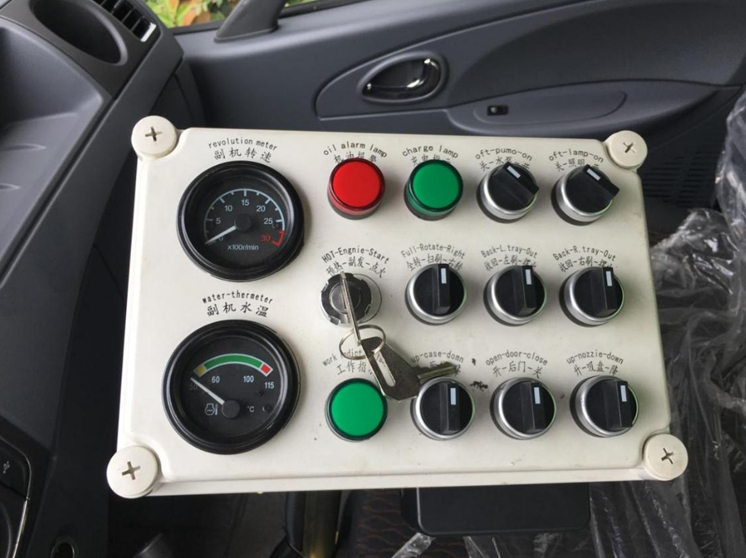 5、清水箱充分利用了車載空間,容積1.5m3,內(nèi)置水位報警器,水箱內(nèi)部做防腐,防銹,防毒處理,使水泵運行更安全,保障了清掃的效率。
