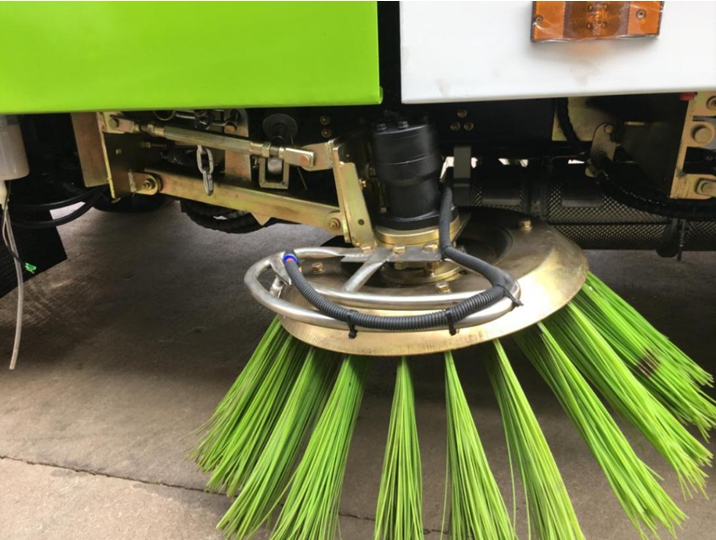 7、左右立掃為單掃盤,前掃盤帶自動避讓功能,減少了掃刷的數(shù)量和掃刷消耗量,能降低使用成本。掃刷上加裝噴水裝置,用于噴霧降塵。左右立掃分開控制,可實現(xiàn)后掃和全掃等不同的作業(yè)模式。